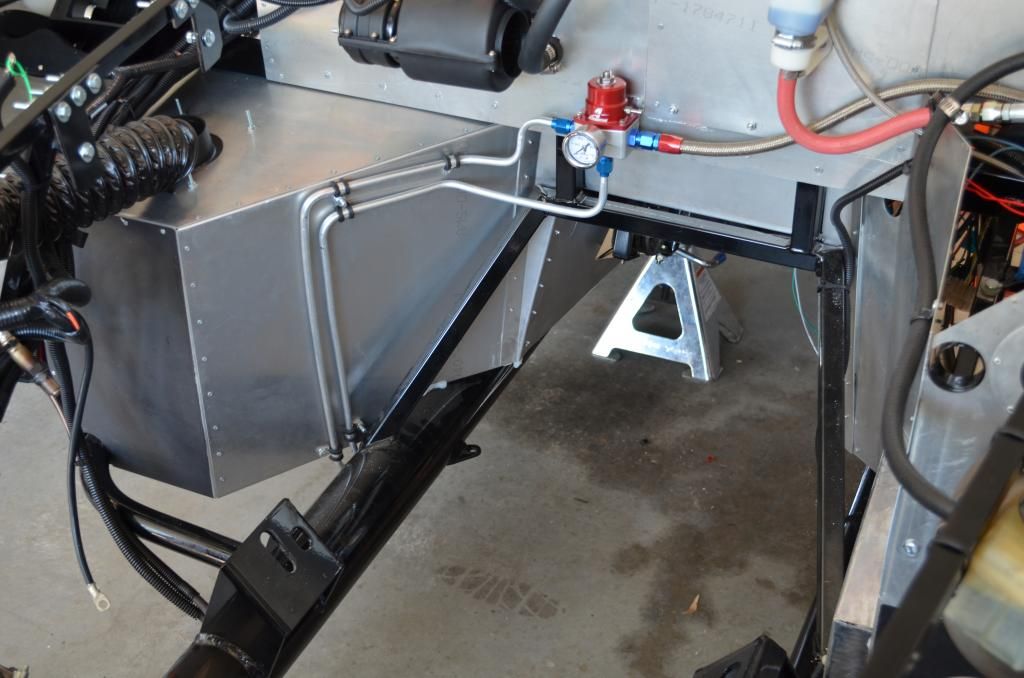 Started on tackling the fuel line routing for the Coyote, but I'm not entirely sure I'm doing it right. I have no idea how much clearance is available around the engine.